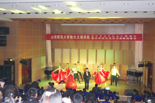 这是一场艺术的盛宴,更是一场展现我院学生专业技术的盛会。本次晚会的成功举办不仅体现了师大学子奋发向上,憧憬未来的精神风貌,更是展现了我校优秀毕业生的专业实力,丰富了在校学生的校园文化生活,同时也为校园营造了良好的艺术文化氛围。为山西师大良好形象的树立打下了坚实的基础。