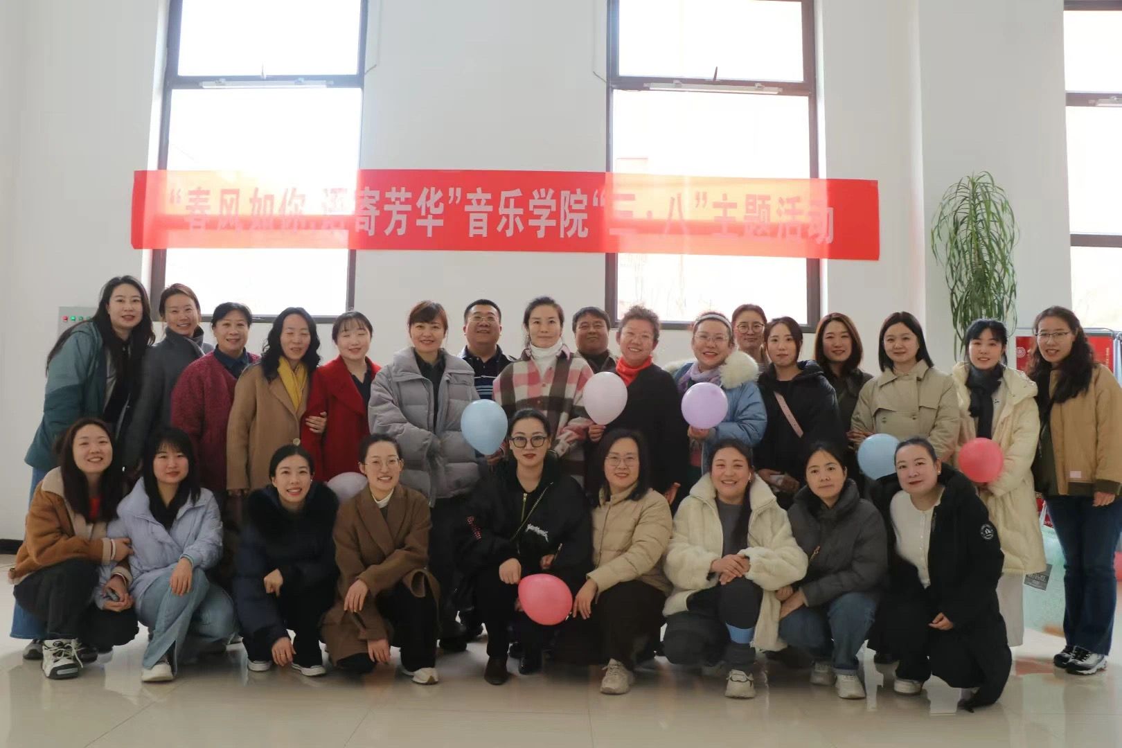 为了表达我院对女教师的关怀和支持,提升她们的自信心和职业幸福感,丰富教师的业余文化生活,活跃校园文化氛围。特此,beat365官方网站工会于3月5日在音乐舞蹈综合楼大厅组织学院全体女教师举办了“春风如你,语寄芳华”beat365官方网站三•八主题活动。