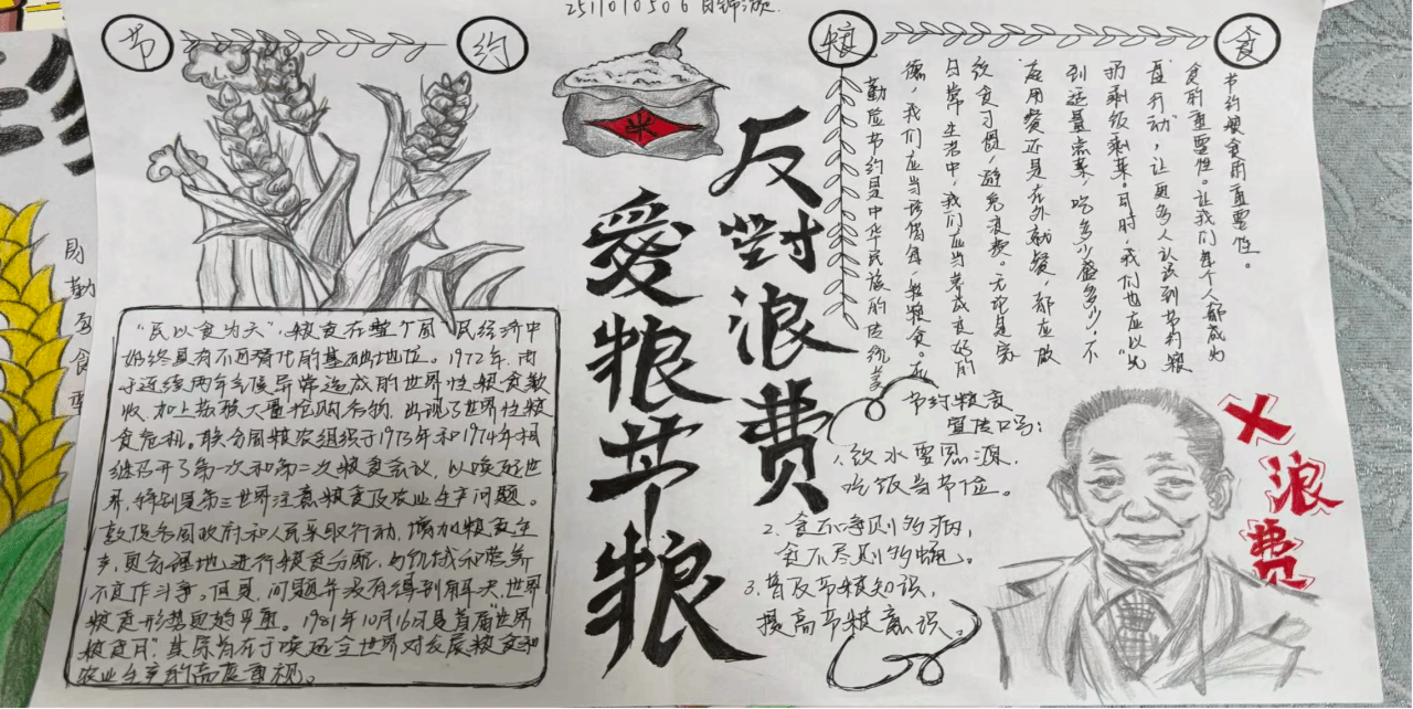 为将“珍惜粮食”的理念深植人心,9月25日,我院权益部借助特色手抄报活动传递“珍惜粮食”理念,推动“光盘行动”校园落地,将“珍惜粮食”的种子植入师生心中。