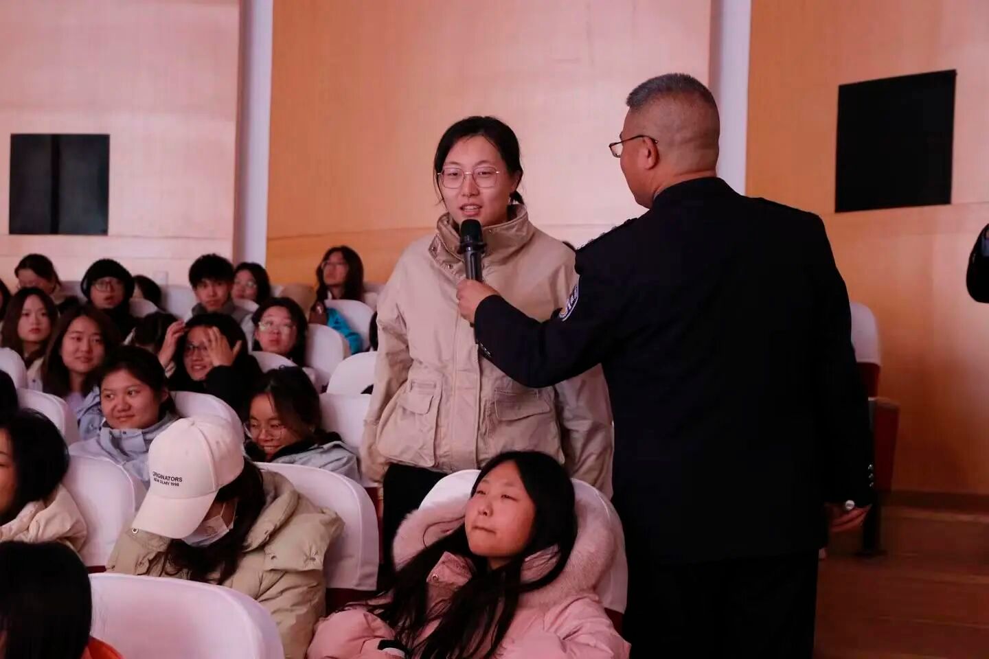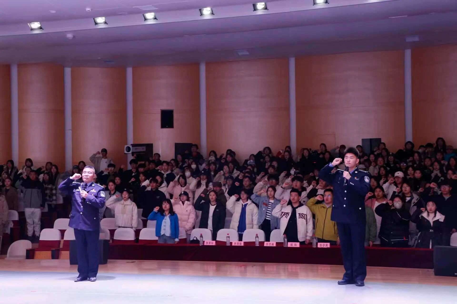 随后,张俊和科长分板块讲解:禁毒板块明确毒品定义及三大特征,划分三代毒品类型,结合毒情形势剖析危害,分享真实案例并给出防范方法;反诈板块以大学生“帮信罪”案例警示风险,通过“反诈骗灵魂八问”和“8个凡是”强化意识。讲座中设互动提问及禁毒知识抢答环节,答对者获奖励。最后,山西警官职业学院学生任艺帆带领全体人员禁毒宣誓,齐读励志语句并合影,讲座圆满结束。
