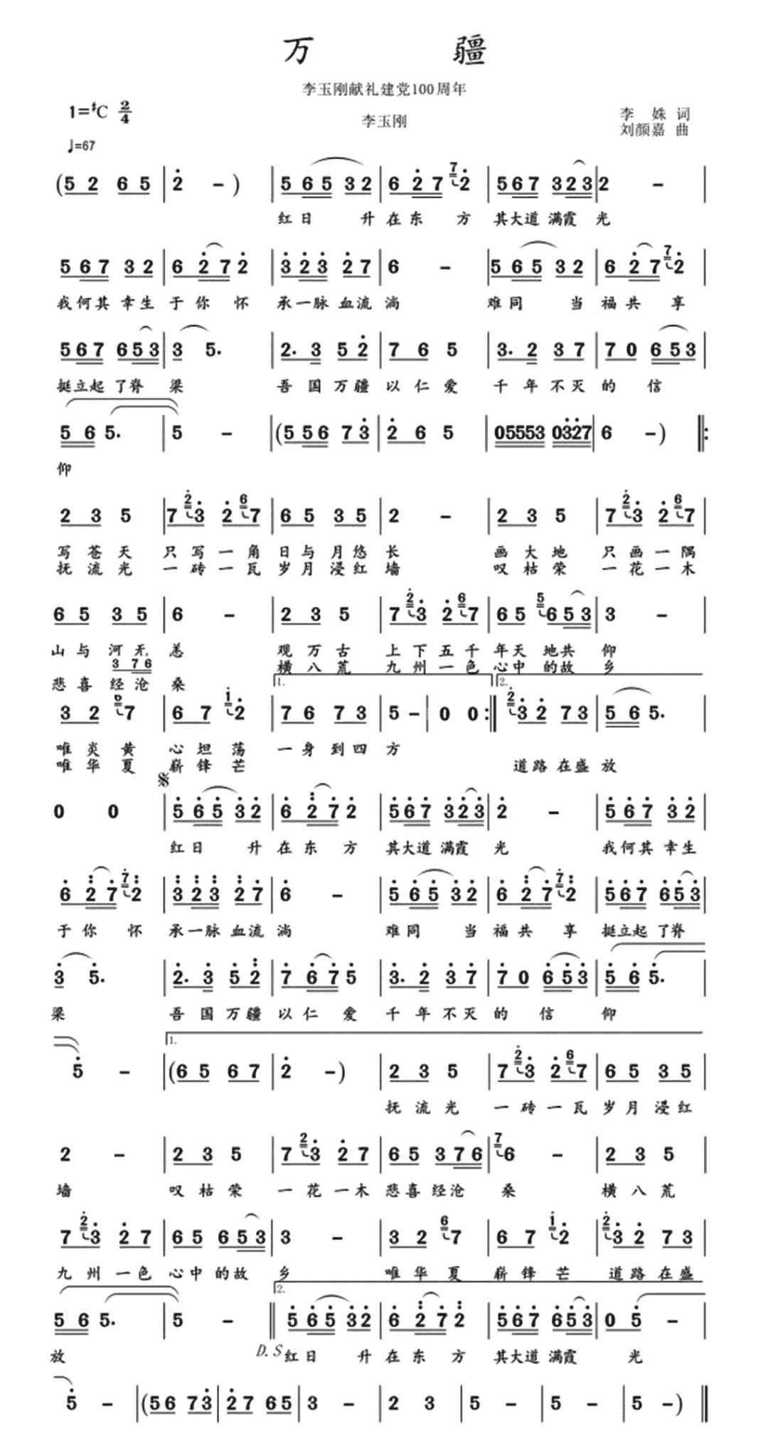 《万疆》是由李姝作词,刘颜嘉作曲,李玉刚演唱的歌曲,于2021年5月4日以单曲的形式发布,收录于同名专辑《万疆》中。2021年12月,该曲被《人民日报》评选为“2021年度十大BGM”;同月,该曲成为2021抖音音乐年度歌曲;2022年1月1日,李玉刚凭借该曲获得2021年度全球华语音乐颁奖盛典年度最佳国风音乐人。2023年3月,歌曲获评为中国音乐家协会《中国当代歌曲创作精品工程“听见中国听见你” 2022年度优秀歌曲》
