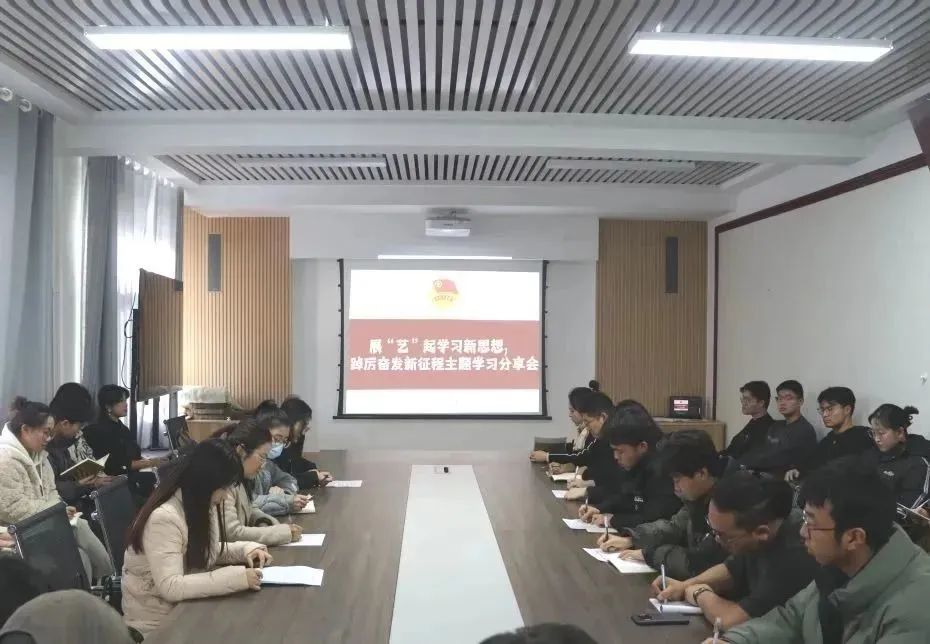为进一步学习贯彻党的二十大思想,增强文化自信,用文艺书写青春,beat365官方网站与书法学院、戏剧学院、美术学院于11月29日联合开展“艺”起学习新思想,踔厉奋发新征程主题学习分享会。beat365官方网站团委副书记李阳,书法学院团委书记宁译锐,戏剧学院团委副书记李蓓蓓,美术学院团委负责老师杨萌及各学院团学组织骨干成员出席会议。