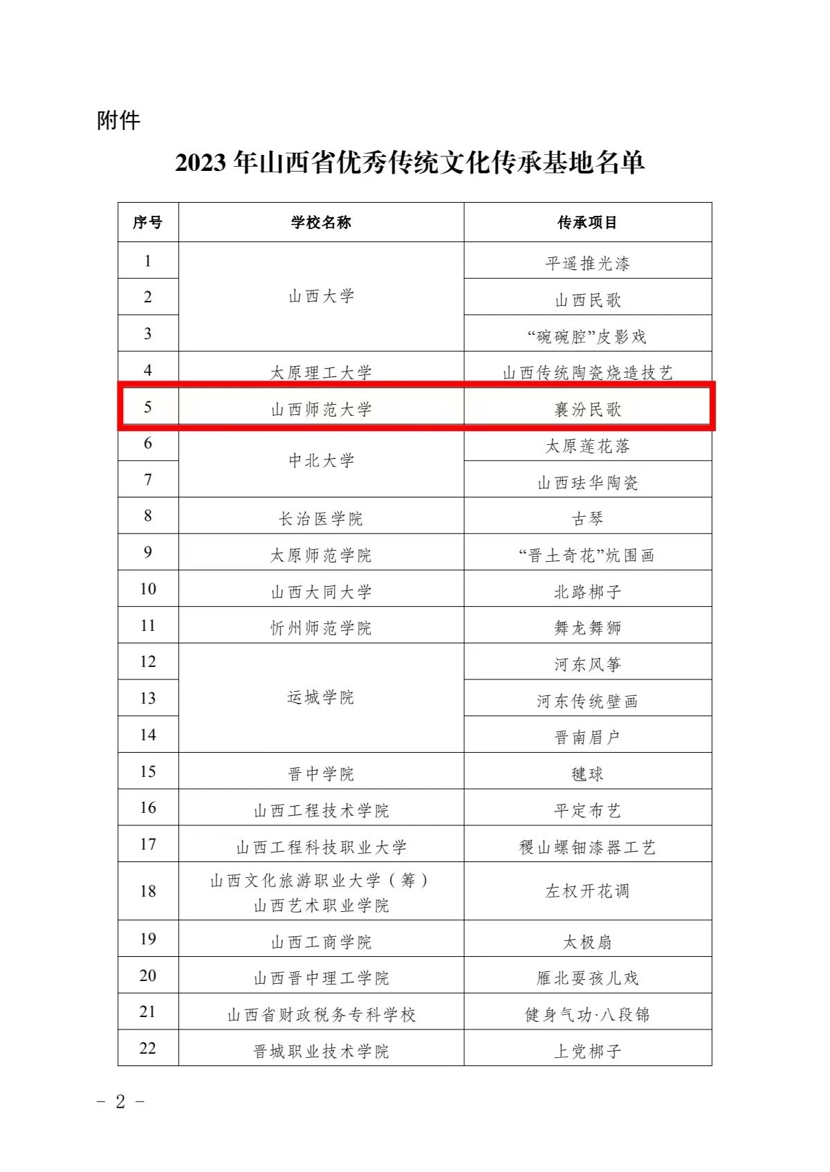近日,省教育厅公布了2023年山西省优秀传统文化传承基地名单,由beat365官方网站beat365官方网站申报的襄汾民歌传承基地成功入选。