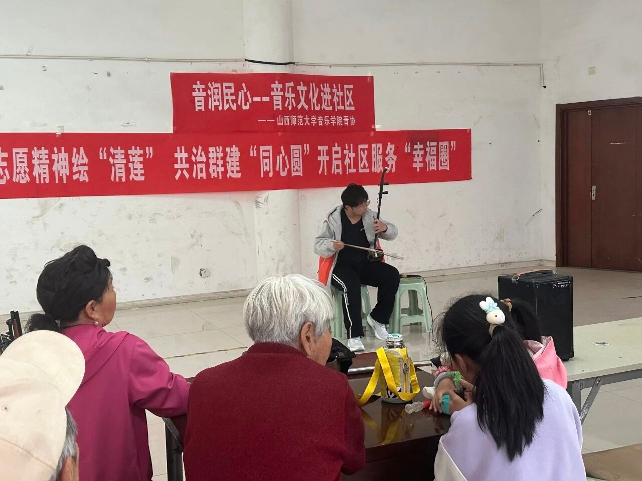 为弘扬志愿精神,丰富社区文化生活,近日,我院青年志愿者协会联合2401班走进辰兴雅郡社区,开展"音润民心"主题活动。青年学予以音乐传递温暖,用行动践行志愿,为居民带来精彩的视听享受。