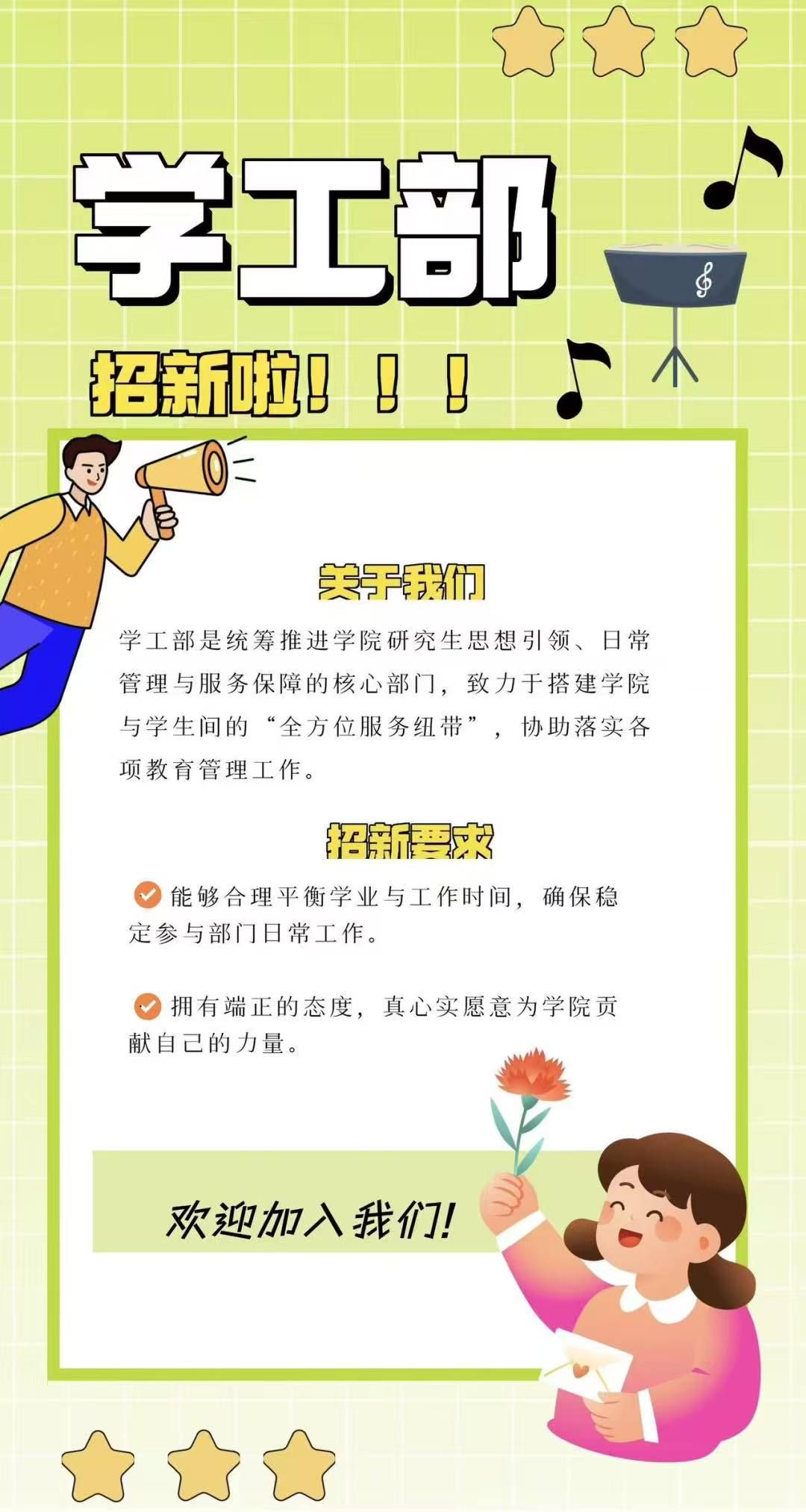 主要负责对接学院研究生管理事务,协助开展奖助勤贷、心理健康疏导等服务;收集同学诉求,搭建反馈渠道,解决实际问题。需要耐心负责、共情能力强,乐于为同学服务的你。