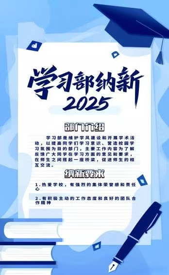 主要负责搭建学术交流平台,策划研究生论坛、学术讲座、专业技能分享会等活动;收集整理学术资源,助力同学科研与专业提升。需要热爱学术、沟通能力强,对专业交流活动有想法的你.
