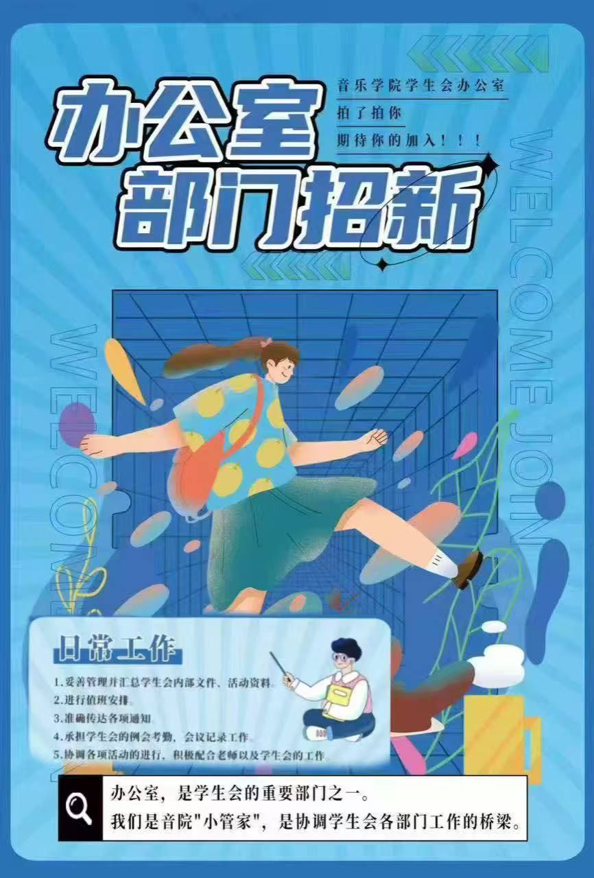 主要负责统筹协调各部门事务,负责会议记录、文件归档、物资管理及经费核算;搭建部门沟通桥梁,保障研会日常运转高效有序。需要细心严谨、擅长统筹规划,熟练使用办公软件(Word/Excel/PPT)的你。