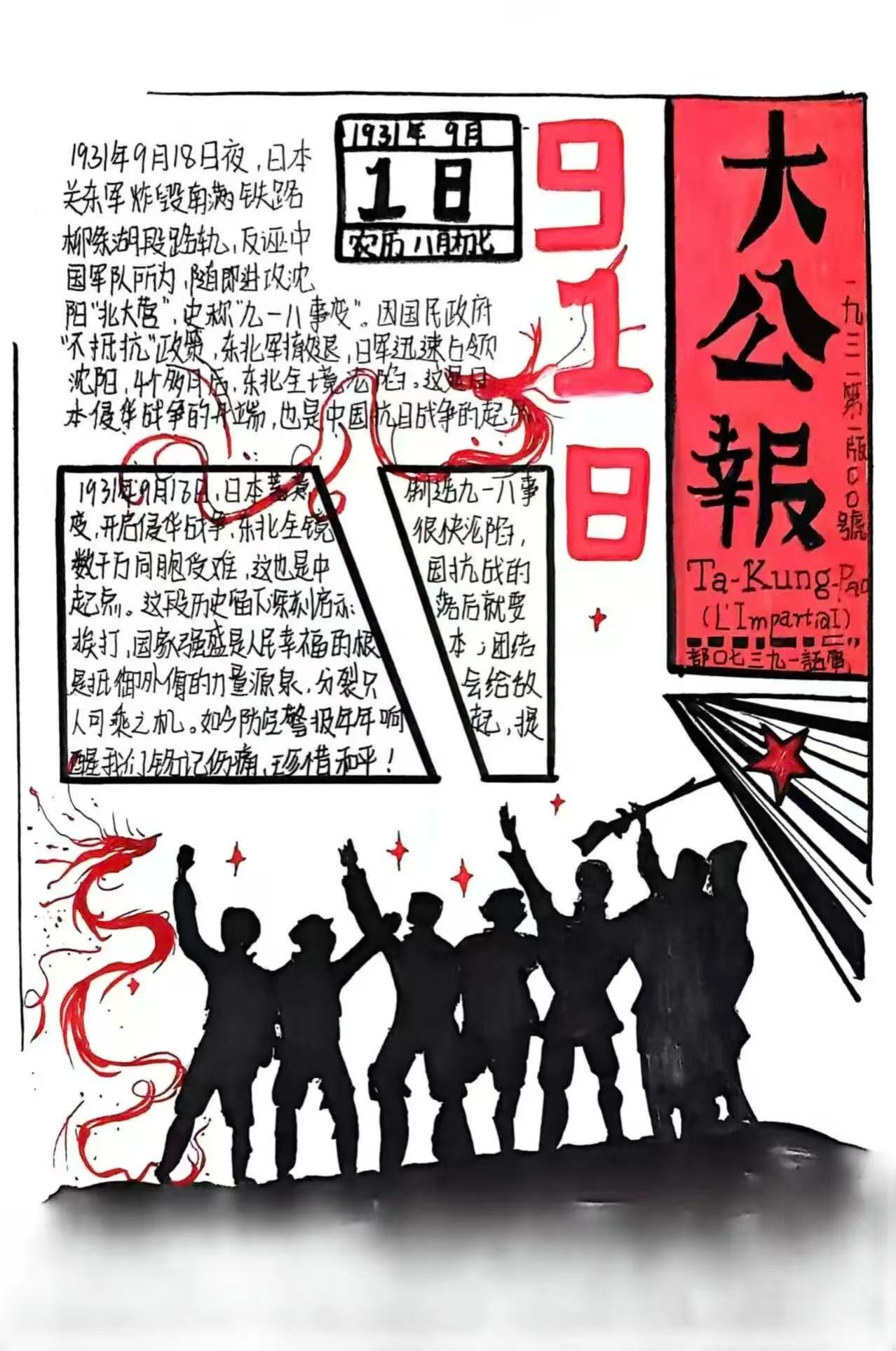 为深刻铭记九一八事变历史,传承弘扬爱国精神,引导同学们以史为鉴、砥砺前行,beat365官方网站beat365官方网站青年志愿者协会发起的“墨韵忆国殇·手绘传薪火”缅怀先烈·致敬英雄纪念九一八事变手抄报制作活动已圆满落幕。