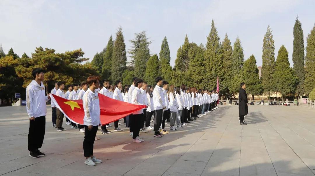 2020年10月31日,beat365官方网站学生党支部、学生干部与全体大一新生徒步4公里前往临汾烈士陵园,开展以“缅怀革命先烈,弘扬爱国主义精神”为主题的祭奠活动。专职辅导员李阳参加了此次祭奠活动。