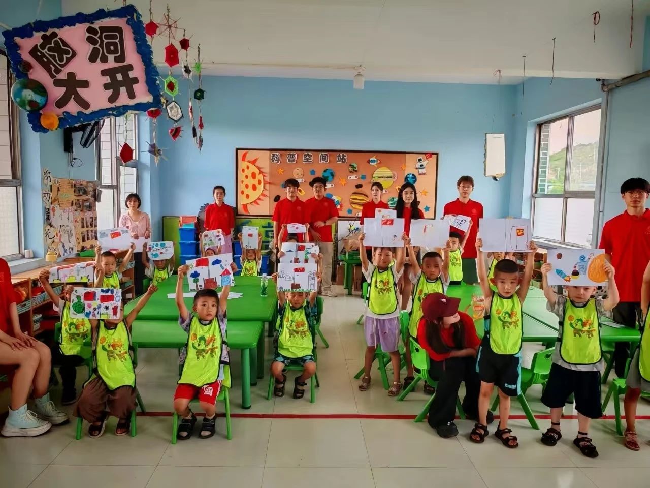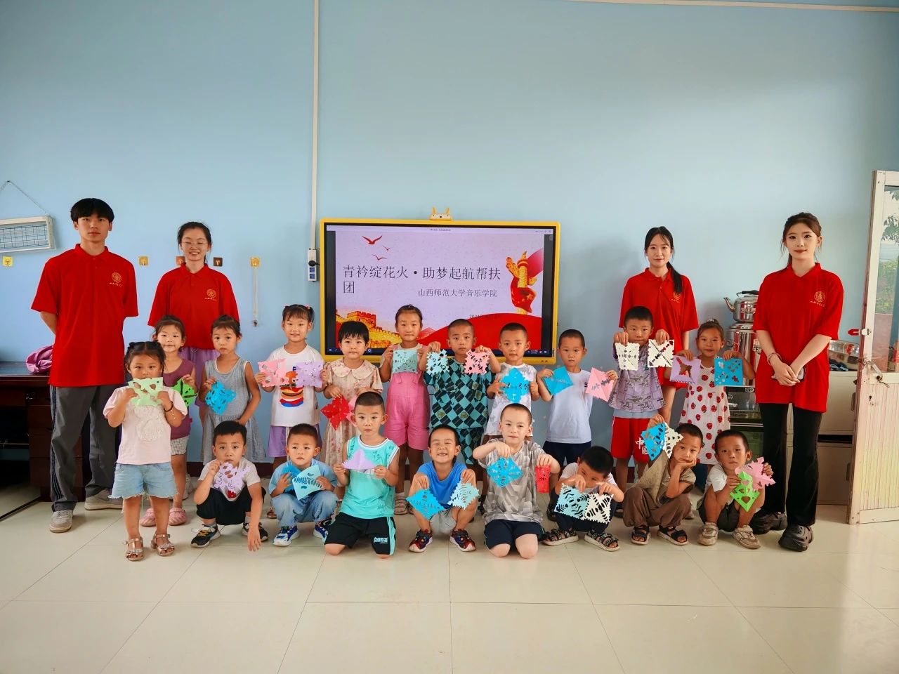 活动中,孩子们通过高唱国歌、绘制五星红旗等方式,培育着他们的爱国情操、文化认同以及社会责任感。同时,团队成员向孩子们讲述刘胡兰、孙中山这两位杰出历史人物的故事,传递他们崇高的精神,深入领会民族精神的深厚内涵。在剪窗花的活动中,孩子们与文化之美产生共鸣,现场洋溢着和谐温馨的氛围。
