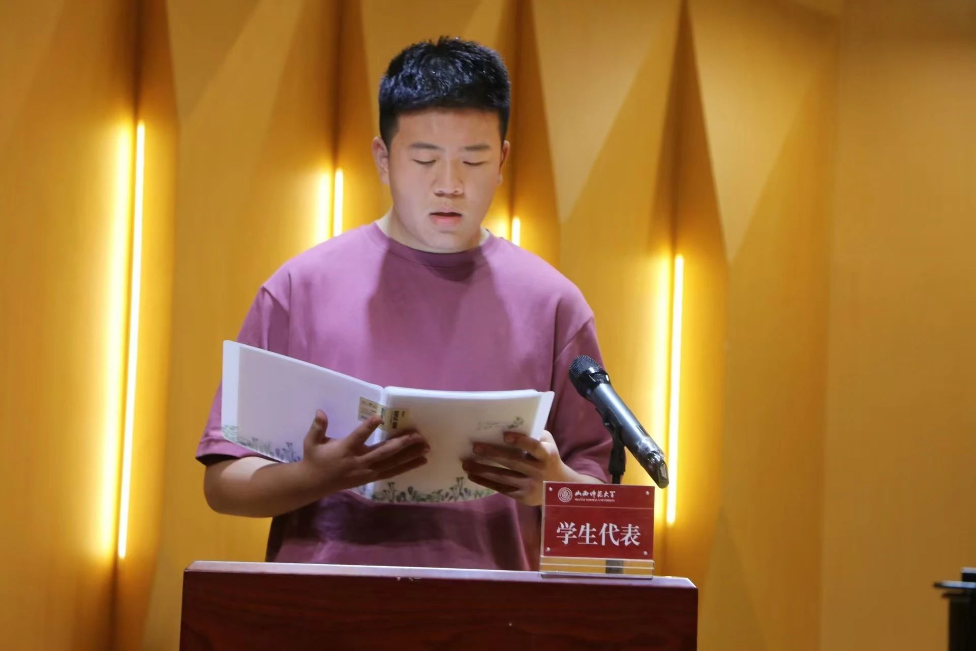 代表刘子轩同学该新生代表围绕要树立远大目标,独自开创天空,面对挫折迎难而上;要尊重他人、学会聆听、宽容谅解、保持品质,提高自身修养,成为品学兼优之人;要跳出“舒适圈”,明确需求目标,不能虚度光阴,牢记初心,在大学生活中不断提升自我。这三个方面来表达自己今后大学四年的目标与决心。