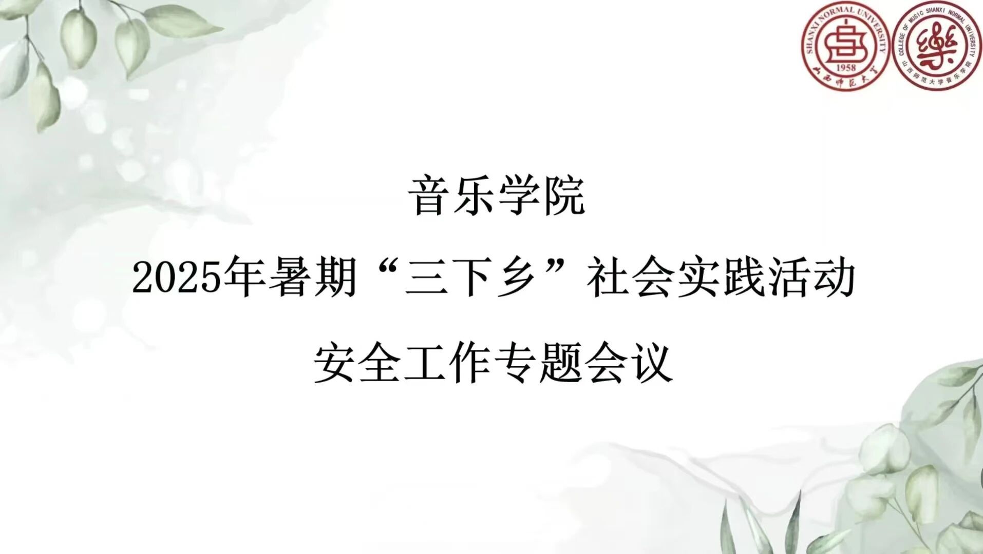 此次专题会议进一步明确了安全责任,完善了安全保障机制,为暑期“三下乡”社会实践活动的平稳推进筑牢防线。期待同学们在实践中以音乐传递温暖,在安全有序的环境里收获成长,用青春力量赋能乡村文化建设!