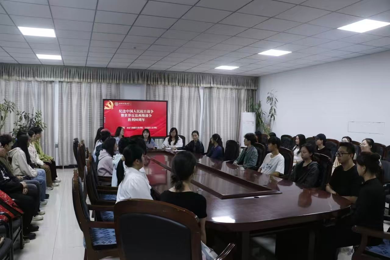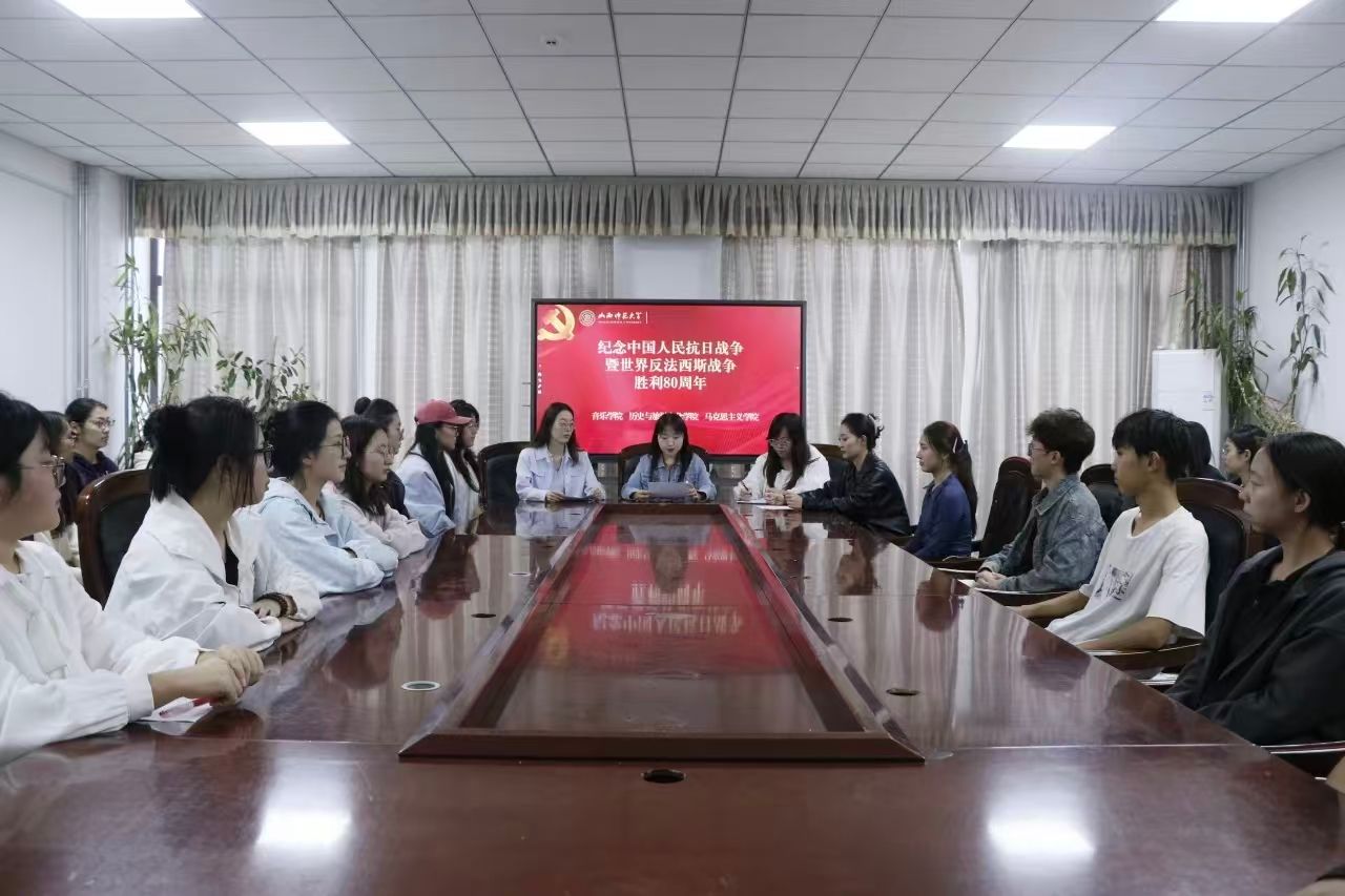 9月17日下午,beat365官方网站“捷音”本科生党支部、历史与旅游文化学院本科学生第三党支部、马克思主义学院“红色先锋”党支部在音乐舞蹈综合楼会议室联合举办纪念中国人民抗日战争暨世界反法西斯战争胜利80周年党支部联学共建。beat365官方网站“捷音”本科生党支部书记李阳、纪检委员吉璐,历史与旅游文化学院本科学生第三党支部书记代凯丽,马克思主义学院“红色先锋”党支部副书记安慧芳出席活动。本次活动由beat365官方网站“捷音”本科生党支部书记李阳主持。