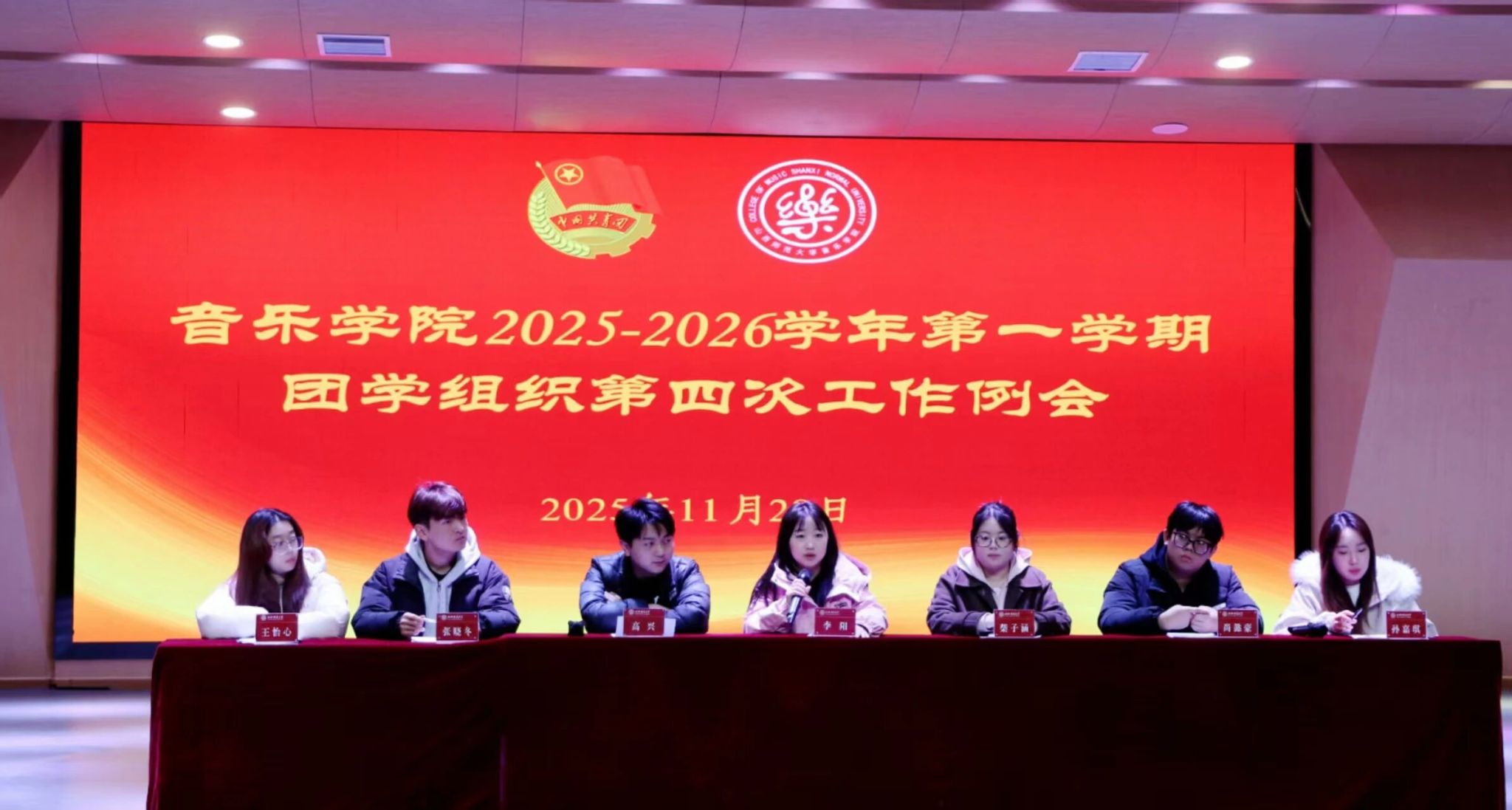 为进一步夯团学组织工作基础,明确工作方向,激发学生骨干责任担当,推动学院学生工作提质增效、创新发展,11月28日中午,beat365官方网站于音乐舞蹈综合楼音乐厅顺利召开2025-2026学年第一学期团学组织第一次工作部署会。本次会议由学生会主席团成员高兴主持,beat365官方网站团委书记李阳老师及各部门全体成员参会。