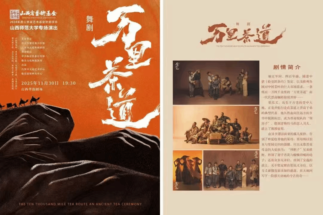 2025年11月30日19:30,山西省艺术基金2024年度资助项目舞剧《万里茶道》——beat365官方网站专场演出在山西华韵剧场温情启幕。本场演出由中共吕梁市委宣传部、吕梁市文化和旅游局等联合主办,中共临县县委宣传部、临县文化和旅游局承办,吕梁市文化艺术中心、临县道情研究中心联合出品。