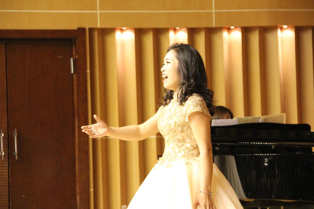 此次音乐会是在项目组成员共同努力下完成的,音乐会上团队成员孟雁翎、王平副教授,青年教师原丽红、韩瑞芳、张健男,结合了他们多年教学与实践,以及对声乐艺术的审美和潜心钻研,用不同的声音姿态为作品塑型,深刻反映词曲作家的创作精髓,进而体现了作品的深刻内涵,汇贯中西的教学理念与声乐表演观念。演唱了不同时期、不同国家、不同风格的教学曲目,使中国声音与西方声音相结合,使美声与民族声乐相结合,取得了良好的教学效果。音乐会赢得了观众阵阵热烈的掌声!本次音乐会由曹霞老师担任钢琴伴奏。