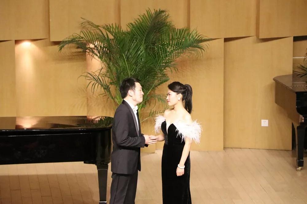 音乐会接近尾声,由杜卓亭跟徐亚威带来男女生同唱曲目,分别是选自歌剧《风流寡妇》的《默默倾听》以及选自歌剧《多瑙河彼岸的萨普勒斯人》的《你从哪里滚回来》。