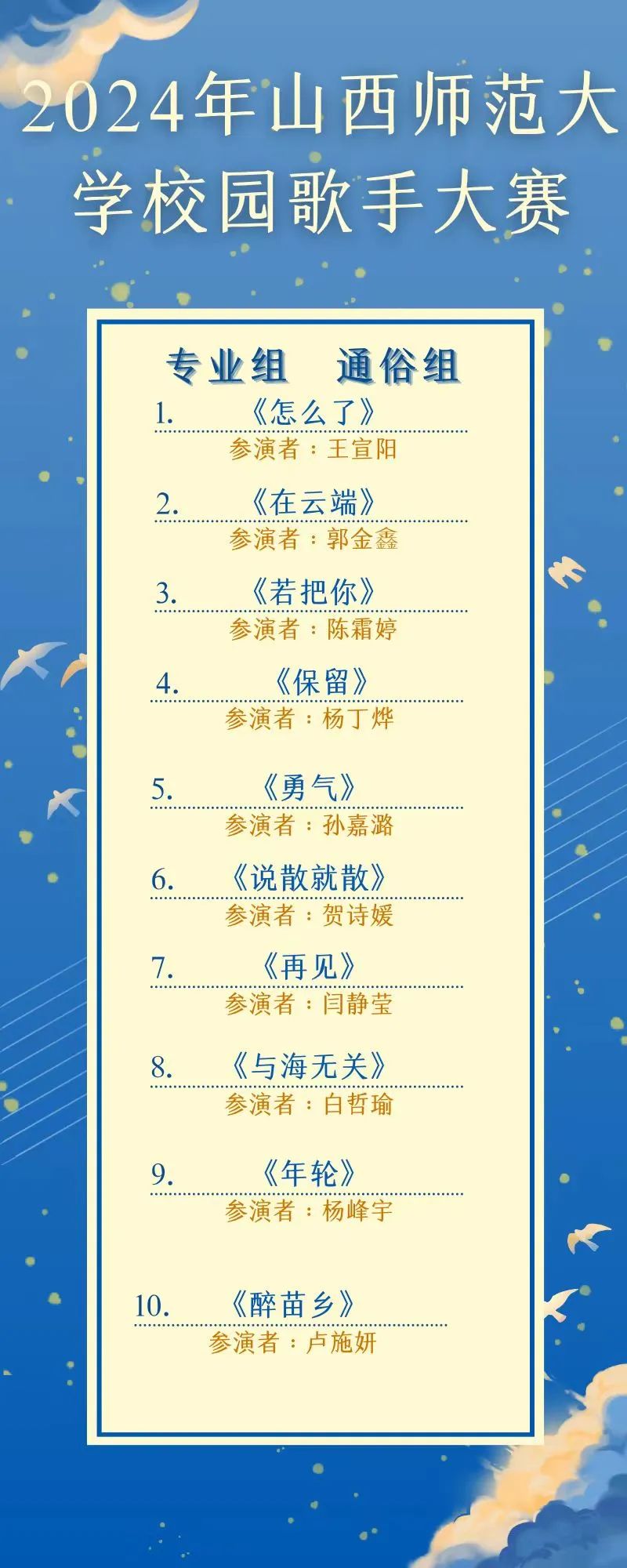 2024年校园歌手大赛专业组通俗展演预告