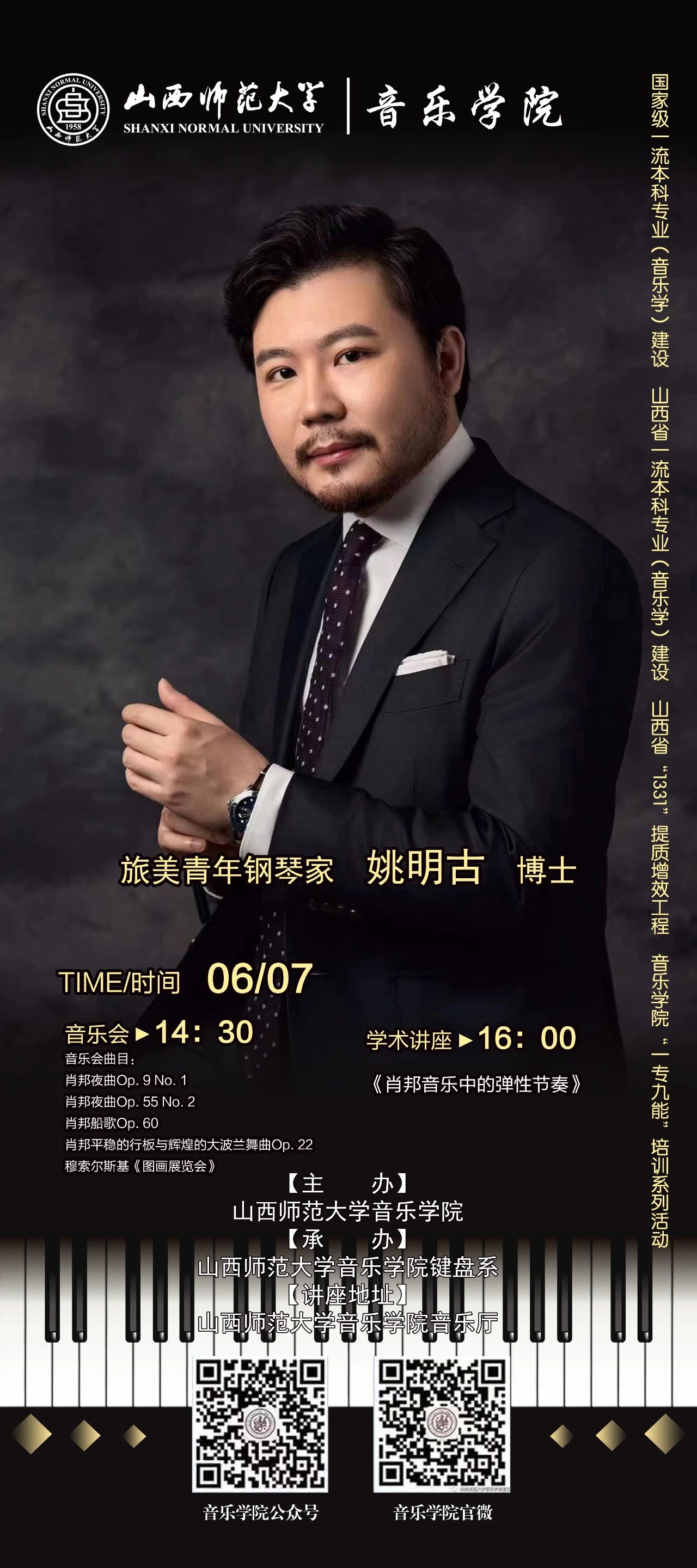 《肖邦音乐中的弹性节奏》旅美青年钢琴家——姚明古博士 beat365官方网站beat365官方网站团委学生会