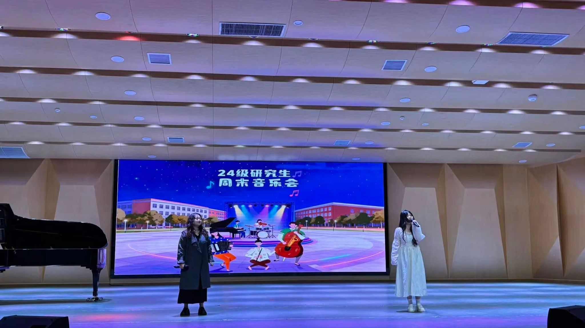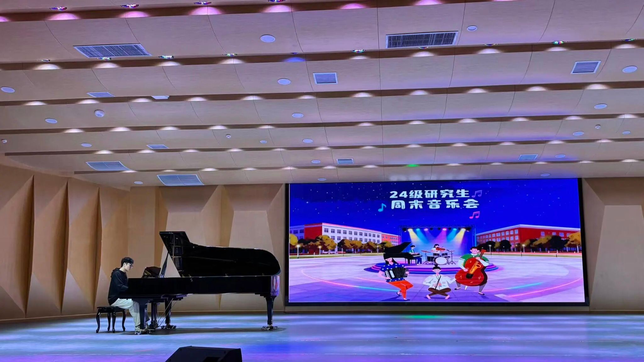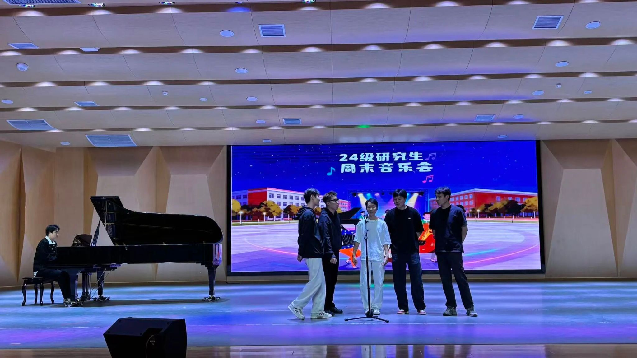 为积极贯彻学院周末艺术实践活动,增强我院学生的专业艺术修养,提升团队凝聚力。9月21日,我院2244170班研究生在音乐厅开展2244170班周末音乐会。