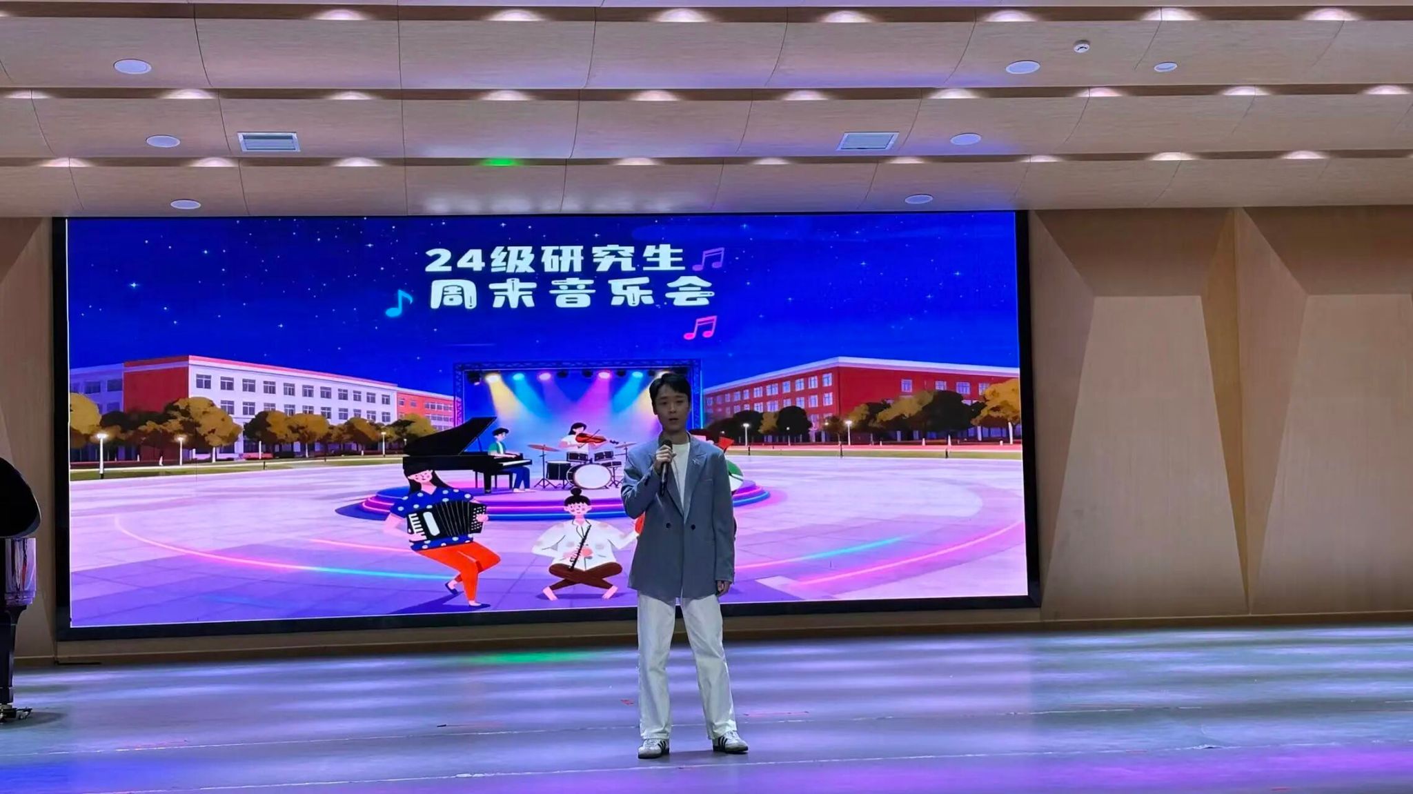 同学们怀揣着对音乐的热爱与热情,依次登台表演,用饱满的情感和专业的演唱,为大家呈现出一场风格多元、充满青春活力的音乐演出。台下掌声雷动,欢呼声此起彼伏,整个现场沉浸在音乐与欢乐交织的热烈氛围中。
