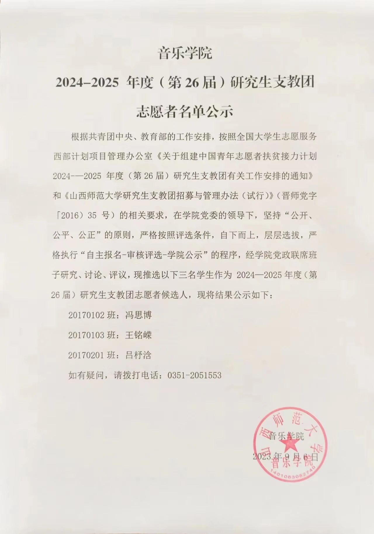 beat365官方网站2024-2025 年度(第26届)研究生支教团志愿者名单公示