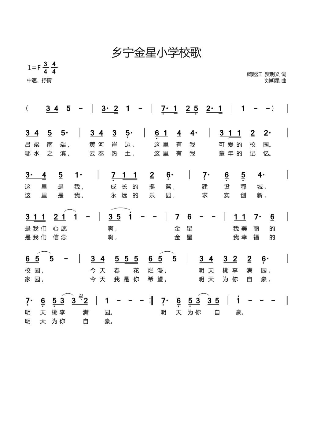 山西省临汾市《乡宁县金星小学校歌》刘明星