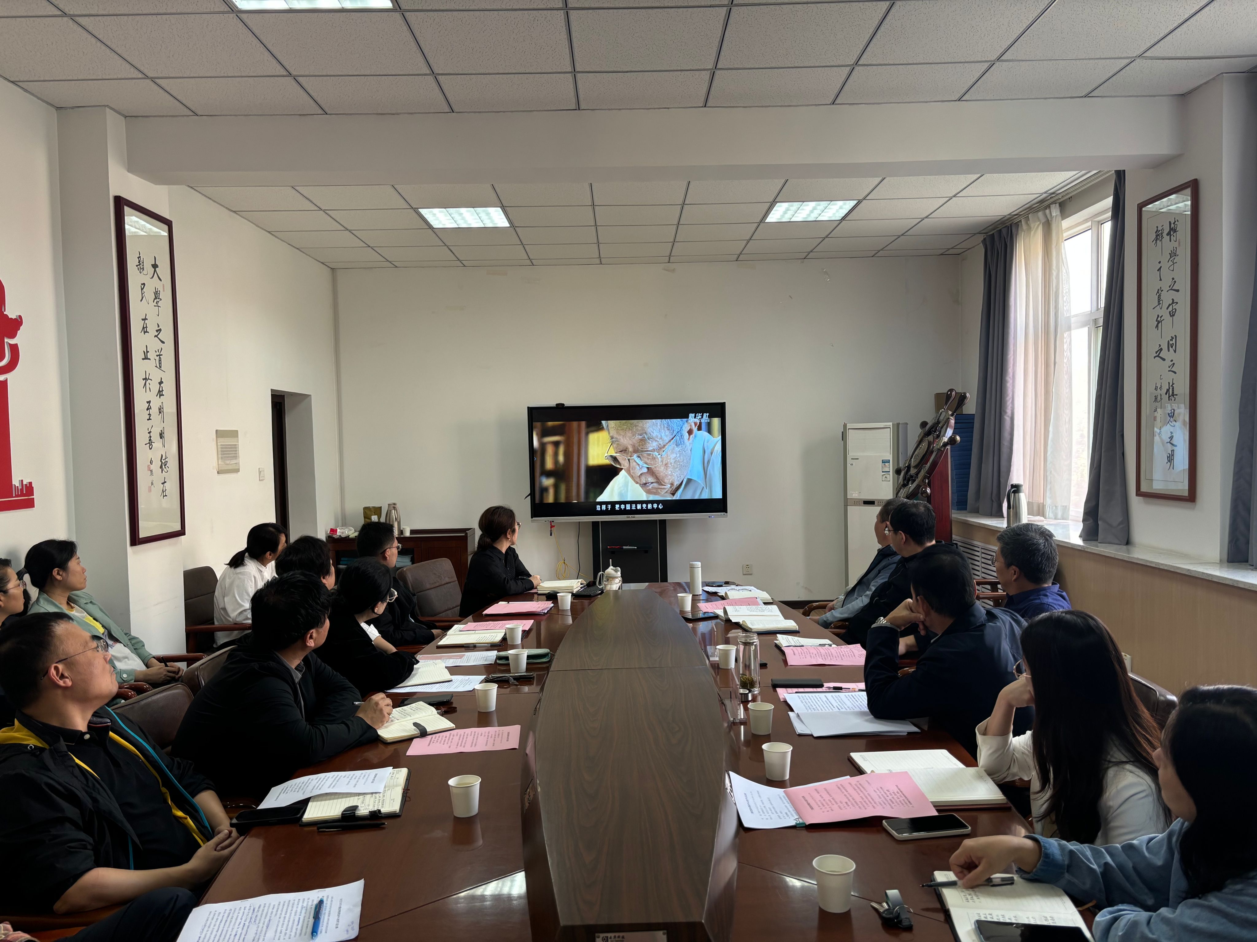 刘晋云、丁琦、陈长征分别领学《习近平在全国教育大会上强调紧紧围绕立德树人根本任务朝着建设教育强国战略目标扎实迈进》《中共中央国务院关于弘扬教育家精神加强新时代高素质专业化教师队伍建设的意见》《大力弘扬教育家精神,为党育人为国育才》,随后观看教育片《深耕法史立德育人——“人民教育家”国家荣誉称号获得者张晋藩》。