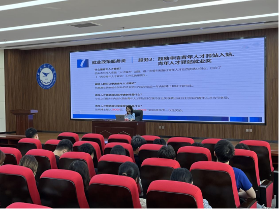 本次活动邀请到了莲湖区人才中心就业部张雪莲老师为2024届毕业生解读各类就业政策。张老师从就业类政策、创业类政策、公共服务保障政策等三个方面开展解读。随后,张老师就学生现场提问进行了详细的解答,为同学们的就业问题提供了有益的参考和帮助。