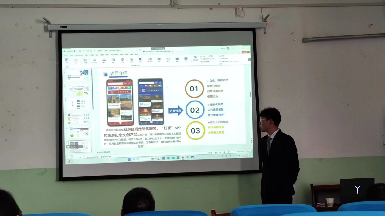 本次pg国际电子网站“互联网+”校级复赛入围的共有三个团队,分别为:第一组精辉动漫 —— 二次元服装定制引领者、第二组红夜-延安智慧红夜文旅领航者和第三组智能牛奶柜。“互联网+”校级复赛路演采用“项目陈述5分钟+答辩3分钟”的形式,各参赛团队代表以PPT展示及实物展示相结合的形式,重点围绕各赛道评审规则要点,分别从项目背景、项目成果、未来规划等方面对各自的项目进行精彩展示。现场评委们从多个维度对路演项目进行了详细提问和深度点评。经过评委们的深思熟虑,最终确定“红夜——延安智慧红夜文旅领航者”团队晋级下一轮的“互联网+”校决赛赛。