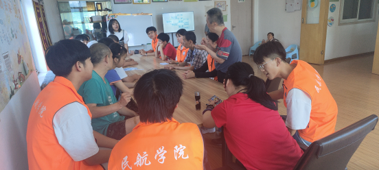 活动现场,志愿者们为阳光之家的成员科普航空知识,就飞机模型进行讲解交流,和他们一起做折纸飞机大赛的游戏。活动最后志愿者们和阳光之家的成员们合影留念。
