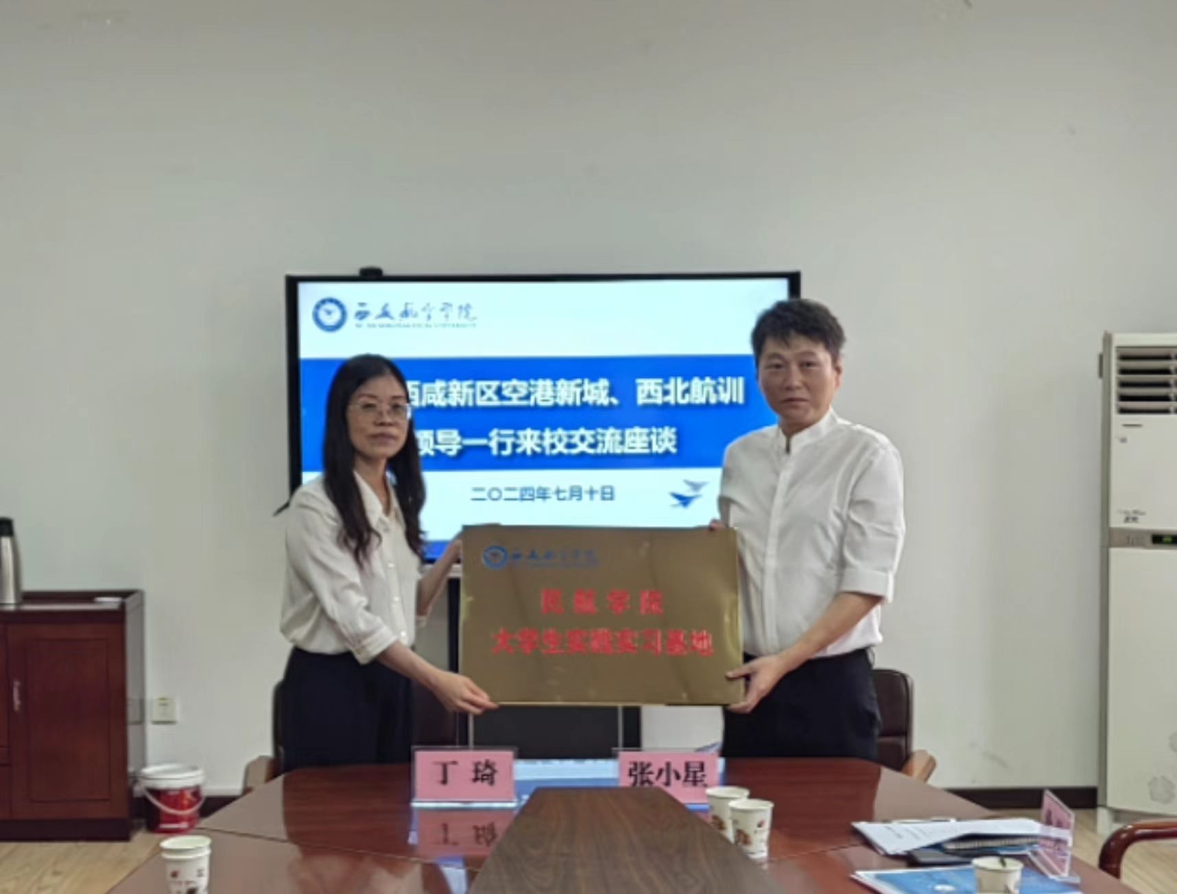 签约授牌仪式上,丁琦代表学院与西北航空训练股份有限公司签署大学生实践实习基地协议,并向其授予“pg国际电子网站大学生实践实习基地”牌匾。